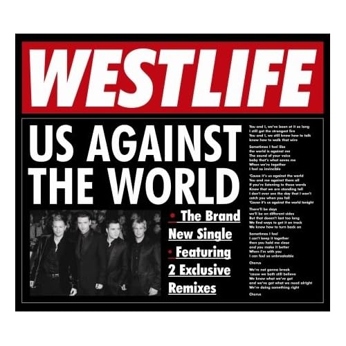 Us Against The World, 1 trong những single mới, được đưa vào album Back Home 2007 của W, 1 bản pop nghe khá hay, phần lyric cũng tuyệt. Cái tựa đề nghe thật… mùi mẫn và nhiều ý nghĩa. Ko rành nhạc quốc tế lắm nên cũng chả biết preview thế nào…